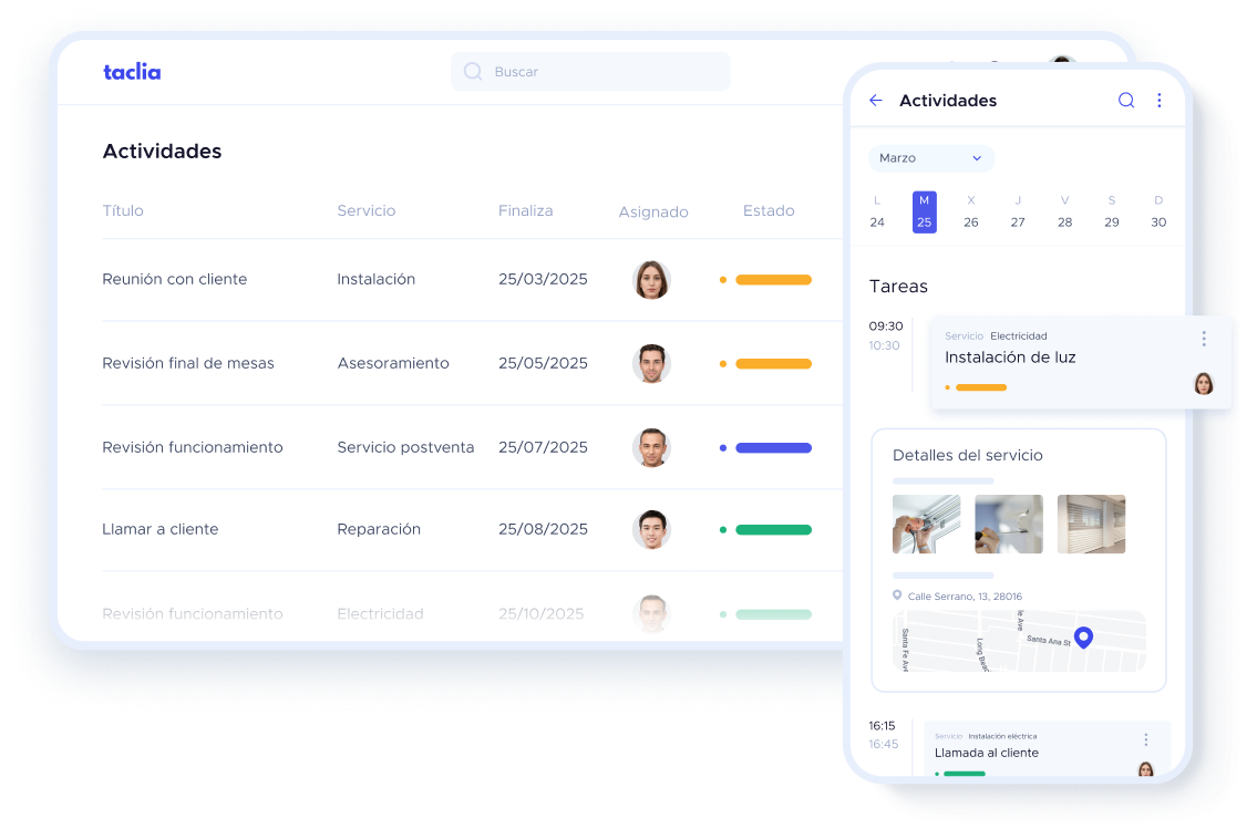 El CRM de taclia te ayuda a organizar la información de tus clientes, hacer seguimiento comercial y cerrar más ventas.
